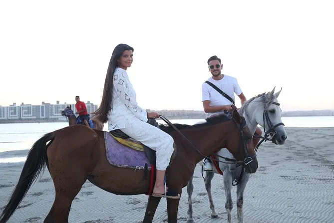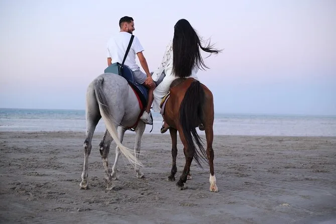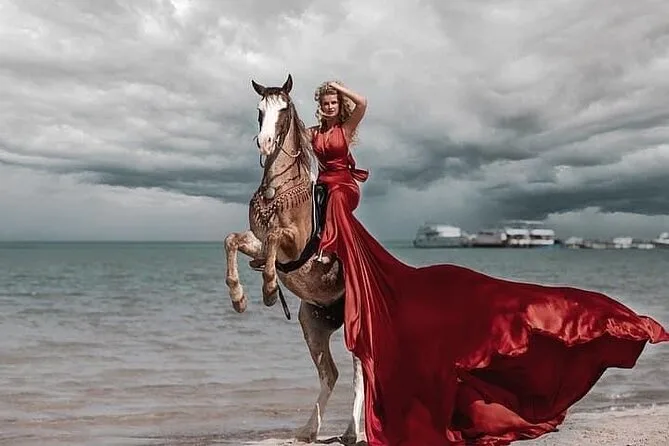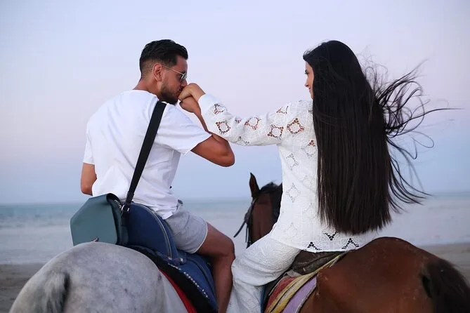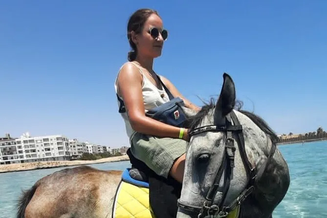 Você vai cavalgar por entre as areias mutantes de Hurghada até as águas rasas do Mar Vermelho — com um guia local que conhece cada trilha. Prepare-se para pequenas surpresas: água fresca batendo nas pernas, histórias do guia e momentos para ouvir só o som dos cascos na areia. Transfer do hotel, equipamentos de segurança e todo o suporte estão inclusos — é mais que um passeio a cavalo, é uma lembrança que fica mesmo depois de voltar ao chão firme.