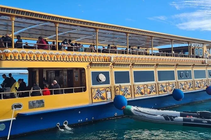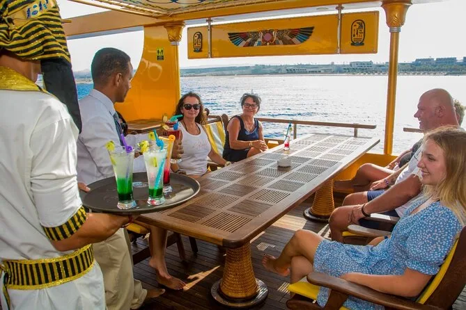 Você vai embarcar num iate inspirado nos faraós em Marsa Alam, ver tartarugas marinhas deslizando do deck submarino em Marsa Mubarak, fazer snorkel em recifes vibrantes com guias locais cuidando de você e depois curtir um almoço fresquinho de frutos do mar a bordo. Prepare-se para risadas, ar salgado e quem sabe até experimentar uma coroa — não é só mais um passeio de barco.