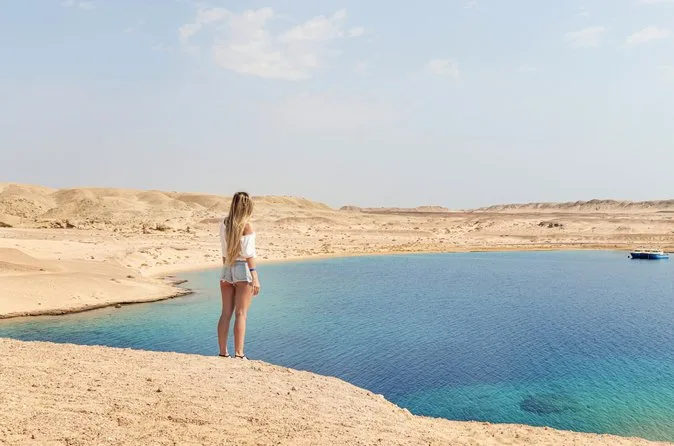 Seu dia inclui traslado de ida e volta do hotel em Sharm El Sheikh com veículo climatizado, todas as taxas do parque nacional pagas antecipadamente (sem custos extras), paradas para snorkel em Coral Gardens com equipamento fornecido se precisar, oportunidades para fotos na Porta de Allah e nos manguezais, visita à Fenda do Terremoto com explicações do guia e tempo para nadar no Lago Mágico antes de voltar para o hotel, cansado mas feliz e com areia no corpo.