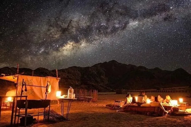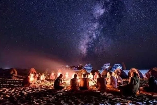 Você vai acelerar quads pelo deserto aberto do Sinai saindo de Sharm El-Sheikh, provar chá beduíno doce num acampamento nas montanhas, ver o pôr do sol montado num camelo, e depois curtir um churrasco sob luzes de corda com shows ao vivo e observação das estrelas com um astrônomo local. Prepare-se para poeira no rosto e muita risada — uma noite que fica na memória muito depois de voltar para casa.