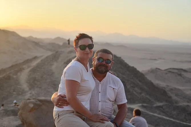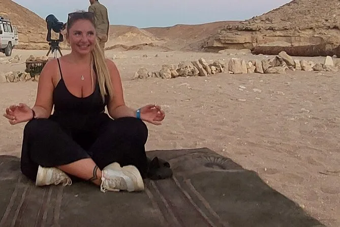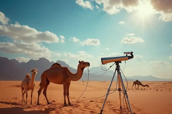 Seu dia inclui traslado de ida e volta do hotel em Sharm El-Sheikh em veículo com ar-condicionado, aventura de quad ou buggy pelas dunas do Sinai (com todo o equipamento incluso), paradas para chá beduíno e preparo de pão em acampamento nas montanhas, passeio tranquilo de camelo ao pôr do sol com fotos, jantar churrasco em buffet com saladas e carnes grelhadas acompanhado de shows ao vivo, além de sessão de observação das estrelas guiada por astrônomo antes de voltar ao hotel à noite.