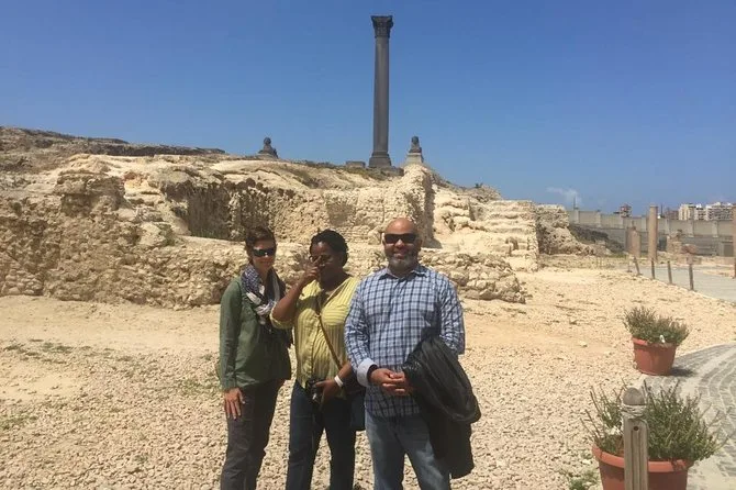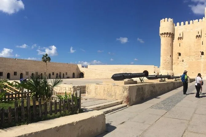 No terceiro dia, seguimos para o norte, rumo a Alexandria — cerca de três horas de carro, com uma parada rápida para chá de hortelã no meio do caminho (o café à beira da estrada tinha gatos espalhados por todo lado). Primeira parada: catacumbas de Kom El Shoqafa. Lá embaixo é mais fresco e estranhamente silencioso, só o eco dos nossos passos nas escadas de pedra. Nosso guia explicou como a arte egípcia e romana se misturam ali — se olhar com atenção, verá Anúbis com armadura romana. Almoçamos frutos do mar frescos no porto; o peixe mújol grelhado é um favorito local. A nova Biblioteca de Alexandria é toda de vidro e pedra branca — um contraste total com os prédios antigos do Cairo — e lá dentro só entra luz natural e vozes baixas. Por fim, visitamos a Cidadela de Qaitbay na costa do Mediterrâneo; o vento salgado batia forte enquanto caminhávamos pelas muralhas antigas onde o farol já esteve.