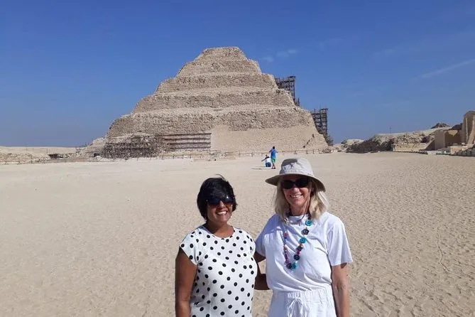 Seu tour privado inclui traslado do hotel no Cairo em carro com ar-condicionado, ingressos para todos os principais pontos, guia local especialista durante todo o passeio, água mineral e lanches para o caminho, além do passeio de camelo próximo às pirâmides. Todos os impostos e taxas de serviço já estão inclusos — sem custos escondidos.