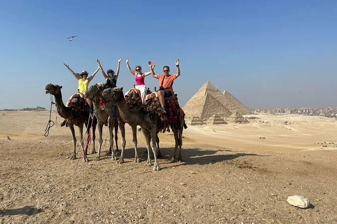 Você vai voar de Hurghada ao Cairo para um dia intenso: ficar sob a sombra milenar das Pirâmides de Gizé, ouvir histórias do seu guia local, provar comida típica no almoço e explorar os tesouros do Museu Egípcio antes de voltar para casa — cansado, mas cheio de lembranças incríveis.