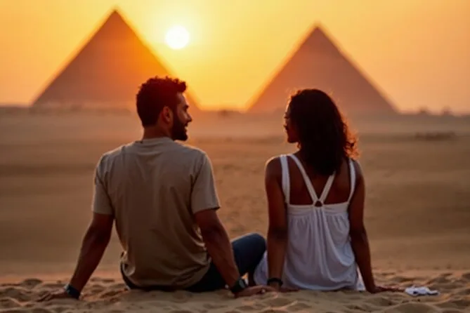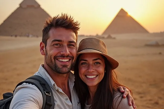 O dia começou antes do sol nascer — mal lembro da viagem até o aeroporto de Hurghada, só o cheiro forte do café e o motorista cantando baixinho. O voo para o Cairo foi tão rápido que quase quis que durasse mais; aquela vista estranha do deserto infinito lá embaixo e, de repente, já estávamos pousando. Nosso guia, Hany, nos esperava na saída. Ele tinha um jeito de fazer todo mundo se sentir como se nos conhecêssemos há anos. Entramos numa van com ar-condicionado (graças a Deus) e logo estávamos no meio do caos matinal do Cairo — buzinas por todo lado, gente acenando com as mãos numa linguagem que eu não conseguia entender.
