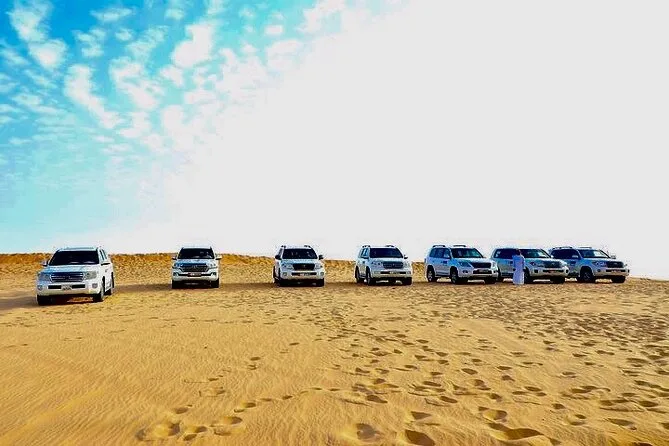 Saia de Abu Dhabi rumo às dunas para um emocionante dune bashing com guia local, experimente sandboard (quedas são parte da diversão), conheça camelos de perto e relaxe em um acampamento no deserto com café, henna e jantar BBQ enquanto o sol se põe. Prepare-se para risadas, sabores novos e, claro, um pouco de areia nos sapatos.