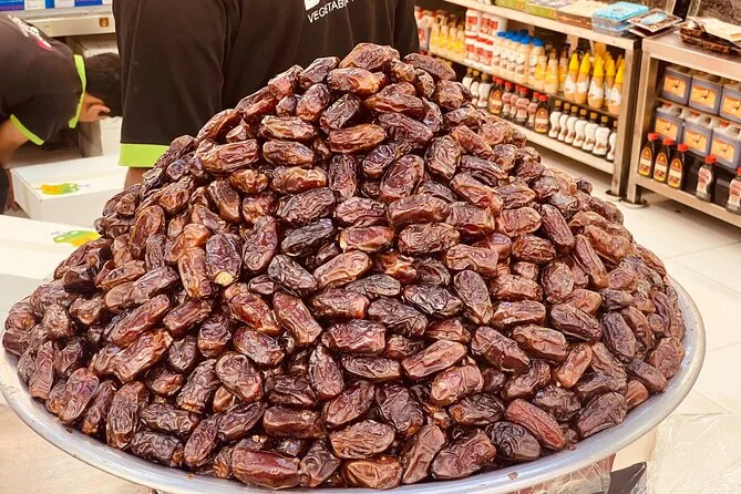 Passamos rápido pela Corniche (baixamos o vidro por um instante — aquele cheiro de mar e brisa da cidade) a caminho do Emirates Palace. Confesso que imaginei um “palácio” com paredes antigas de pedra, mas o lugar é pura cúpula, palmeiras e detalhes em ouro por todos os lados. Havia uma sessão de fotos de casamento na fonte — todo mundo parecia personagem de filme. Ficamos ali um tempo só para absorver o clima. Na Heritage Village, o ritmo desacelerou; um senhor mais velho que fazia cestos nos chamou e me deixou tentar (fui péssima). O mercado de tâmaras perto exalava um aroma doce e terroso — provamos três tipos diferentes antes de seguir. Não fazia ideia que tâmaras podiam ter sabores tão distintos.