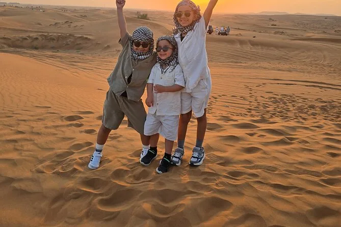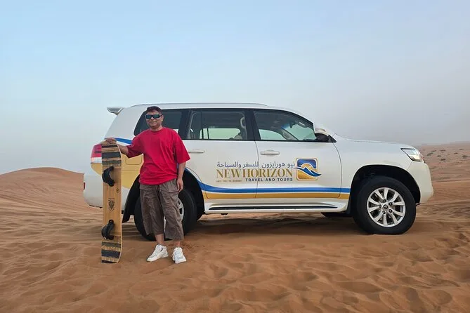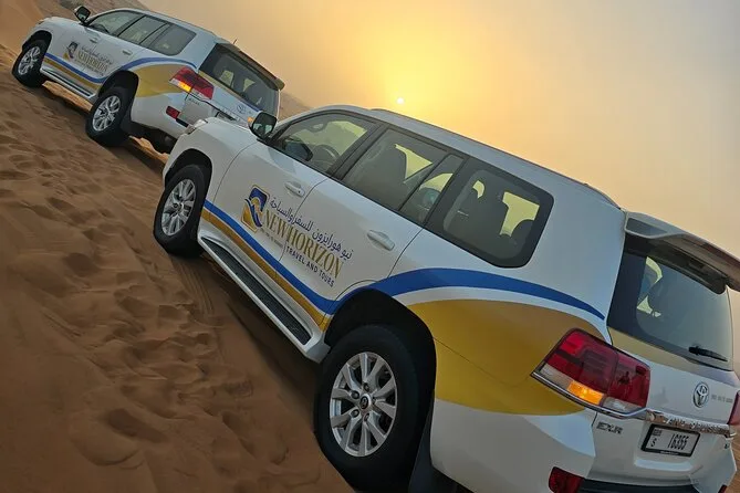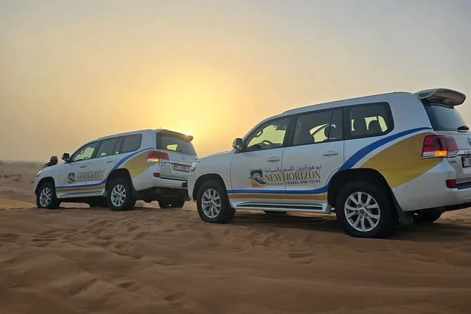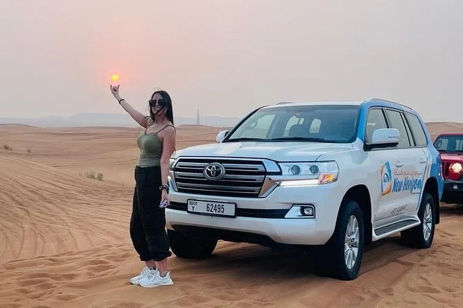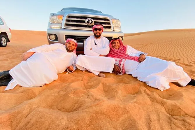 Seu passeio inclui transporte com ar-condicionado do seu local até as dunas vermelhas de Lahbab, onde você terá 30 minutos de quadriciclo antes de partir para o dune bashing em um 4x4 Land Cruiser com motorista licenciado. Você também poderá experimentar passeio de camelo, sandboard, tirar fotos por conta própria, pintura de henna feita por artistas locais, além de um jantar completo com churrasco (opções vegetarianas e não vegetarianas) e bebidas à vontade, enquanto assiste a apresentações de dança do ventre, show Tanura e de fogo, antes de voltar à noite.