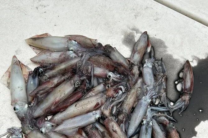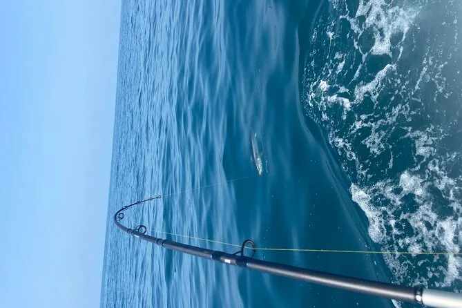 Começamos pescando de arrasto—Jon nos ensinou a ficar atentos aos sinais do atum. Ele apontou para um redemoinho na superfície (“Lá estão eles!”) e todos nós nos atrapalhamos um pouco, com as linhas se embolando (ok, a culpa foi minha). Não imaginei que ia precisar de tanta paciência; houve momentos longos só com o som das ondas batendo no casco e as gaivotas voando. Em certo ponto, um grupo de golfinhos passou rápido, tão perto que dava para ouvir a respiração deles. Esse som fica marcado na memória.
