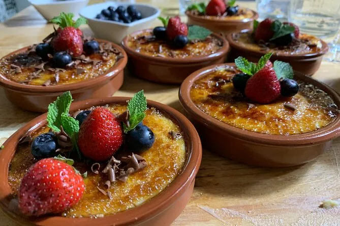 Você vai preparar paella de frutos do mar, tortilla espanhola, crema catalana e provar dez tapas espanholas.