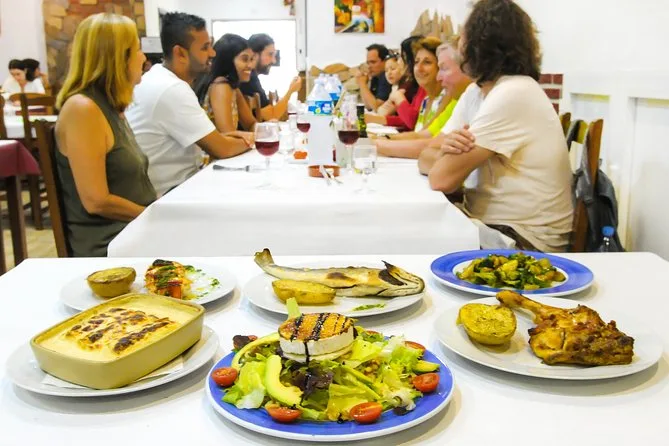 O restaurante oferece várias entradas e pratos locais; normalmente atendem restrições alimentares se avisadas com antecedência.