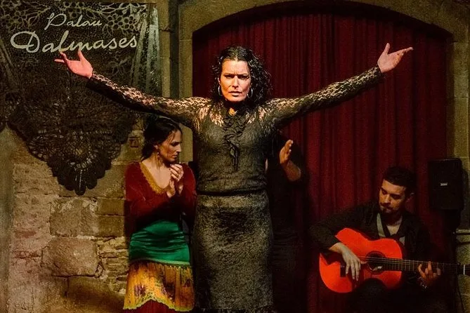 O show de flamenco acontece dentro de um palácio medieval na área antiga de Barcelona.
