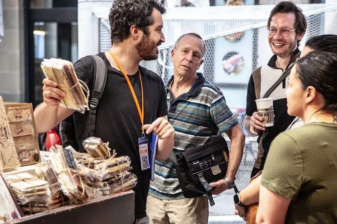 Se você optar pela degustação de comida e vinho no final (nós fizemos), ganha uma sala privativa no Mercado El Born onde o sommelier serve vinhos que você provavelmente nunca ouviu falar. O pão com tomate é bagunçado, mas delicioso, e tinha um queijo azul que me surpreendeu — não esperava gostar, mas agora às vezes até sinto vontade. Depois do segundo copo, todo mundo começou a conversar mais; até a Marta compartilhou seus lugares favoritos para petiscos tarde da noite. Saí de lá satisfeito em todos os sentidos, se é que me entende.