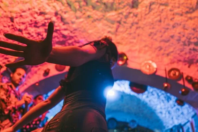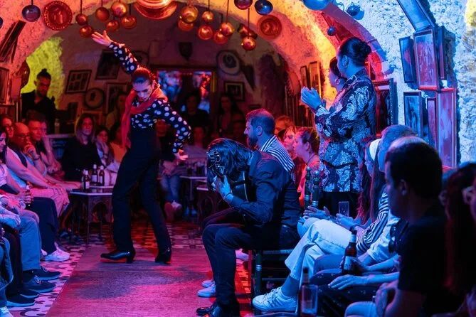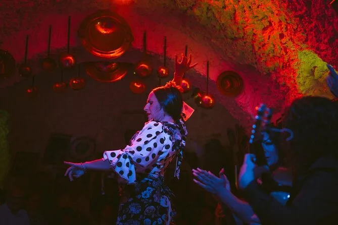 Sua noite inclui ingresso para um show íntimo de flamenco dentro da Cueva Los Amayas, em Sacromonte, onde você vai curtir música e dança ao vivo de pertinho, sem sistema de som — só a arte pura numa caverna histórica, antes de voltar para o ar da noite de Granada.