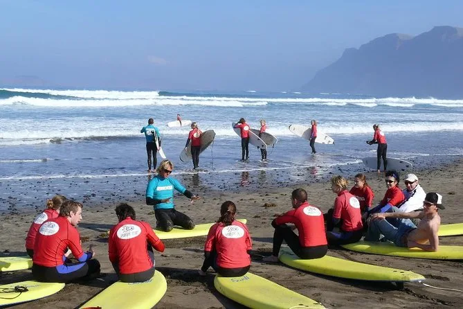 Você vai direto para a praia selvagem de Famara com sua prancha no braço e um instrutor local ao lado. Aprenda a ler as marés, sinta as ondas do Atlântico sob seus pés, divirta-se com pessoas do mundo todo — e depois volte para a base com areia ainda grudada na pele. Essa primeira onda fica para sempre.