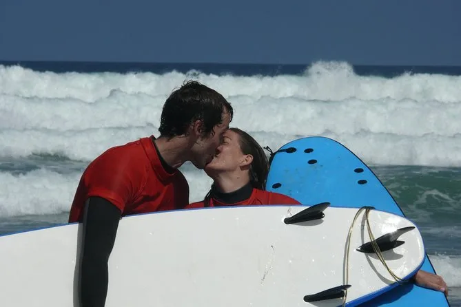 A aula começou bem na beira da água. A Maria explicou como entender as marés (confesso que no começo quase não entendi — ela desenhou linhas na areia e sorriu quando meu amigo tentou adivinhar para onde era “maré alta”). O Atlântico estava mais frio do que eu esperava quando entrei, mas depois de alguns tombos e um banho de água salgada no nariz, isso deixou de importar. Tinha gente de todo canto — um cara de Berlim que vibrava toda vez que alguém ficava em pé, alguns locais que pareciam deslizar na água com facilidade. Em um momento, deitei na prancha e deixei o mar me levar. O sol apareceu por um instante e tudo ficou silencioso, só o som das ondas.