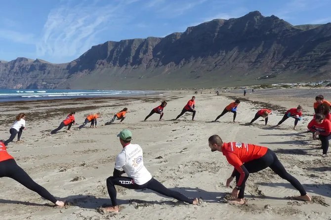 Seu dia inclui transfer da escola até a praia de Famara com o grupo, uso completo de wetsuits e pranchas para a aula, instrução de guias locais experientes que garantem aprendizado seguro, além de seguro de responsabilidade durante toda a sessão, com retorno junto após o fim da aula.