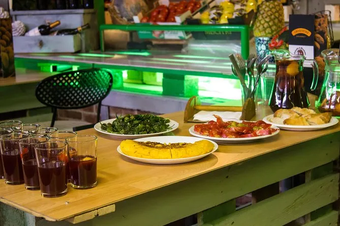 O tour inclui uma parada num mercado local para degustar tapas espanholas autênticas.
