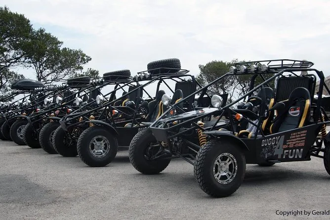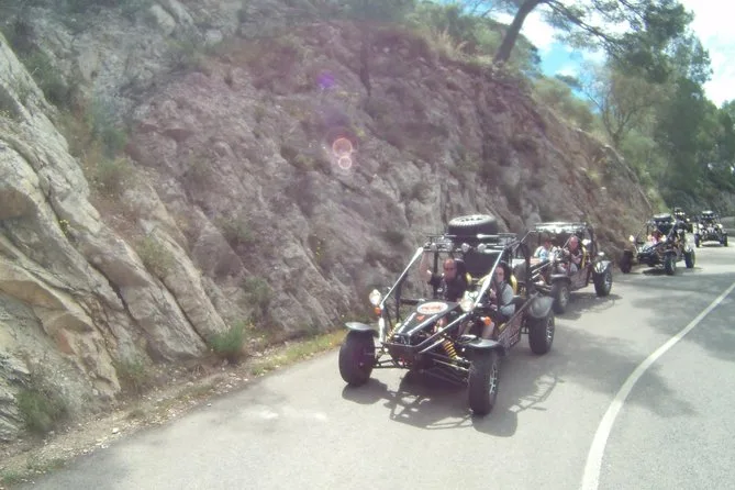 Seu dia inclui dirigir buggies manuais abertos, guiados, saindo de Cala Millor ou Sa Coma, com combustível incluso e veículos revisados diariamente para segurança. Água mineral (com ou sem gás) é fornecida durante todo o passeio. Você vai ouvir histórias e receber orientações do guia local enquanto passa por mirantes, mosteiros, fortalezas históricas e praias para nadar, antes de voltar junto ao final do tour.