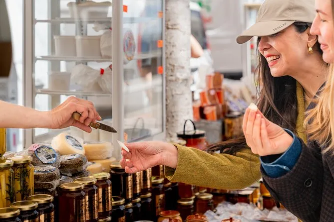 Sim, você terá tempo para provar queijos e mel na feira local perto do mosteiro.