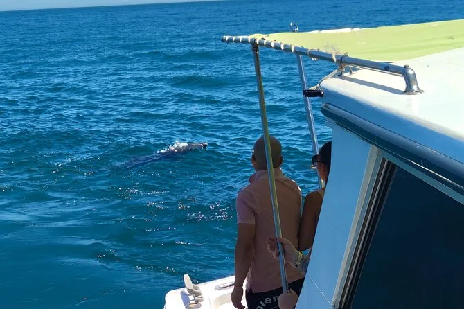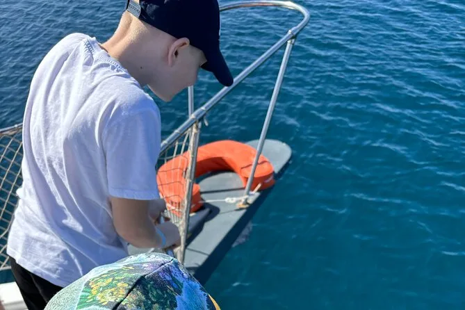 Não esperava rir tanto — talvez pelas histórias da tripulação ou só pelo clima leve que tomou conta assim que deixamos a terra para trás. Alguém apontou de repente: “Olha!” Um brilho cinza surgiu entre as ondas, depois outro. Golfinhos, bem ali na nossa frente. Não foi um show grandioso — só momentos rápidos, rabos cortando a luz do sol antes de sumirem de novo. Tentei tirar foto, mas acabei mesmo foi admirando.