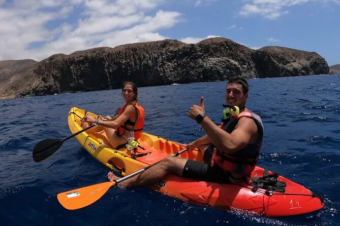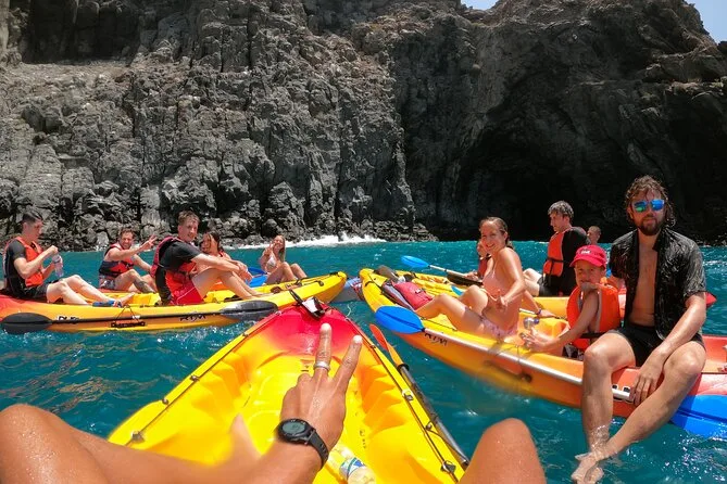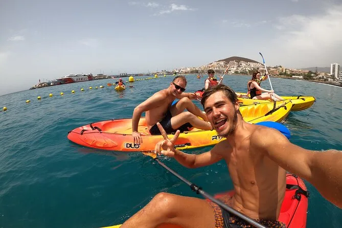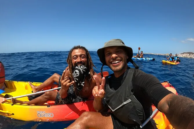 O dia inclui todo o equipamento para snorkel e um guia local profissional que conduz o caiaque pelas falésias do sul de Tenerife e o snorkel com tartarugas perto de PalmMar — é só chegar pronto para remar e nadar antes de voltar juntos para a praia de Los Cristianos.