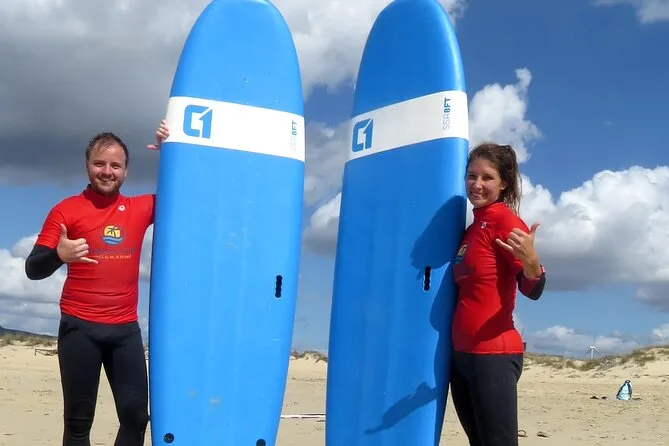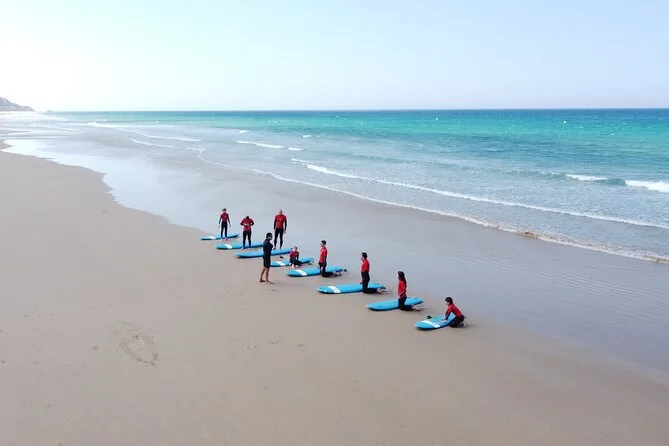 Aulas de surf pela manhã na praia de Zahara — risadas, sal e pequenas conquistas