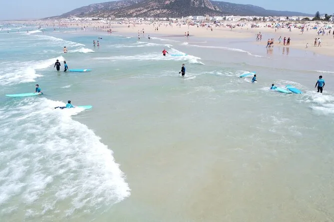 Sua manhã inclui todo o equipamento de surf (roupa de neoprene e prancha), acompanhamento de instrutores locais na praia de Zahara de los Atunes perto do rio Cachón, lanches como suco e frutas ou barrinhas durante as pausas, atividades ambientais como recolher plástico da areia, além de acesso a chuveiros e vestiários antes de voltar para casa com fotos do seu dia.