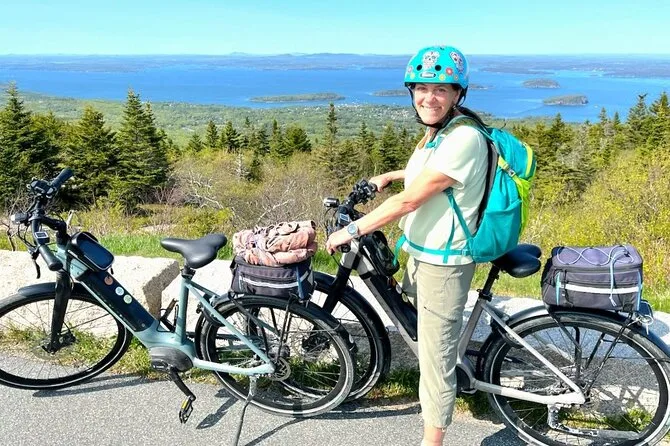Você sai de Bar Harbor com aula de ebike e dicas locais antes de pedalar pelas tranquilas carriage roads de Acadia. Espere pontes de pedra, cheiro de floresta, paradas à beira do lago — e muita liberdade para curtir um popover ou só ouvir os pássaros no caminho.