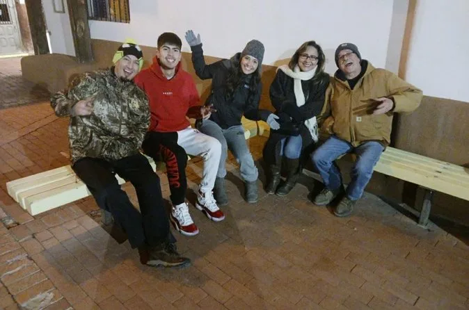 Sua noite inclui ingresso para o tour guiado às 20h pelo Old Town Albuquerque, com paradas em lugares como a Igreja San Felipe de Neri e o pátio do Nick Garcia; o passeio é familiar, aceita pets, é totalmente acessível para carrinhos e cadeiras de rodas, e oferece pontos para descanso ao longo do trajeto curto ao ar livre — só não esqueça a câmera para capturar surpresas pelo caminho.