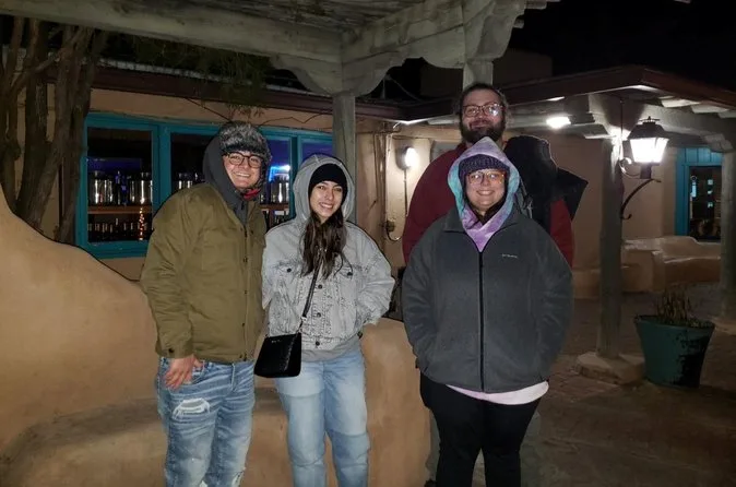 Andamos por becos estreitos onde o ar parecia mais fresco, mesmo naquela noite seca do Novo México. Maria apontava lugares onde pessoas juravam ter visto sombras passando rápido ou ouvido vozes quando não havia ninguém por perto. Ela contou sobre os “13 fantasmas principais” de Old Town — tem um no Rattlesnake Museum que, pelo jeito, adora aparecer. Alguém do grupo tentou tirar uma foto e jurou que pegou algo estranho no canto. Não sei se foi um truque da luz, mas todo mundo se juntou em volta do celular como criança de novo.