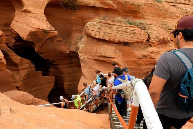 Seu dia inclui traslado de ida e volta do hotel em Las Vegas, entradas para o Antelope Canyon (seção escolhida) e Horseshoe Bend, além de água engarrafada ilimitada — só leve seus próprios lanches ou almoço, pois não são fornecidos alimentos neste passeio em grupo pequeno.