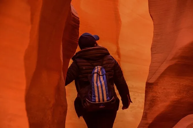 O dia inclui transporte em veículo 4x4 pelas terras Navajo com todas as permissões pagas; caminhadas guiadas pelo Secret Antelope Canyon e acesso a um mirante privado em Horseshoe Bend, antes do retorno ao ponto de partida perto de Page.