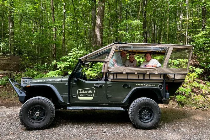 Seu dia inclui viagem em jeep estilo safari com um guia local pela Floresta Nacional Pisgah e pela Blue Ridge Parkway, além de água engarrafada e lanches para cada participante — bastões de caminhada e capa de chuva também são levados caso sejam necessários durante as caminhadas até as cachoeiras.