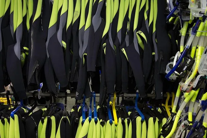 Seu dia inclui o uso de roupas de neoprene de 5mm para aquecer (do tamanho infantil até 3XL), máscaras e snorkels para você não precisar levar nada, serviço de toalhas após o mergulho, café ou chocolate quente para esquentar entre os mergulhos, além de casacos para barco para as manhãs frias—tudo acompanhado por um divemaster certificado que cuida da segurança e registra fotos durante o passeio antes de você se trocar em instalações aquecidas.