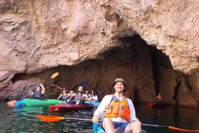 Você vai remar trechos tranquilos do Rio Colorado com um guia local, explorar as águas brilhantes da Emerald Cave, observar animais nas paredes vulcânicas do cânion e aproveitar lanches e um banho em Willow Beach — tudo isso antes do almoço em Las Vegas. O início cedo garante água calma e sem multidão, deixando uma lembrança que fica muito depois do passeio.