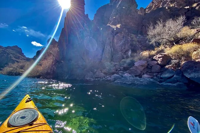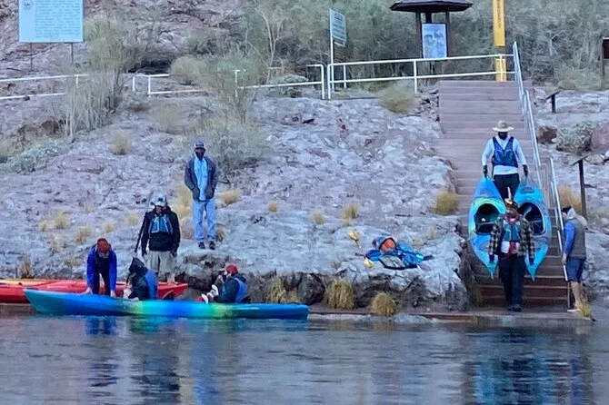 Sua manhã inclui retirada opcional no hotel na Strip de Las Vegas, todo o equipamento e segurança para caiaque, água e lanches ao longo do rio, além da taxa de entrada se usar o transporte deles — então só precisa trazer protetor solar e talvez uma roupa seca para depois do mergulho em Willow Beach.