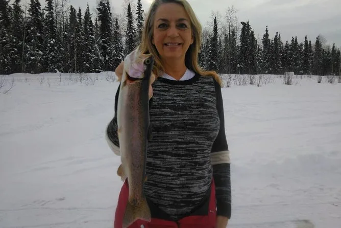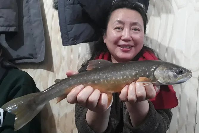 Seu dia inclui o uso de uma cabana deluxe aquecida com eletricidade sobre o lago congelado perto de North Pole, todas as varas e iscas fornecidas pelo guia local, chocolate quente para esquentar as mãos enquanto espera os peixes, além de linguiça de rena grelhada no pão — e o peixe fresco que você pescar será temperado e preparado ali mesmo antes de voltar para casa.