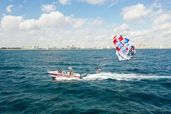 Seu coração vai disparar ao subir no céu sobre a Gold Coast de Fort Lauderdale, sentindo a brisa do mar e a vista da cidade com Sea Rocket Parasailing. Com um capitão experiente e todo equipamento incluso, você vai até molhar os pés no Atlântico antes de voltar — uma experiência que fica na memória.