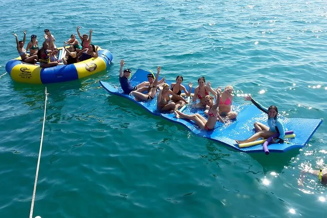 Seu dia inclui todos os brinquedos aquáticos — escorregador gigante direto para o Oceano Atlântico, acesso a um enorme tapete flutuante e trampolim para se divertir ou relaxar sob o sol da Flórida — além de uma equipe local simpática servindo bebidas geladas enquanto você passa pelas famosas mansões e praias de Fort Lauderdale antes de voltar para a costa.