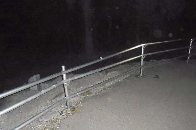 Fomos de carro entre dois ou três pontos (traga seu próprio veículo para essa parte), cada um com uma atmosfera diferente. O último lugar foi essa ponte assombrada onde o ar parecia mais frio. Alguns de nós fizeram perguntas em voz alta — ri de mim mesmo, mas fiz mesmo assim. Às vezes só ouvíamos o vento passando pelas tábuas, mas às vezes... bem, até hoje penso naquele sinal estranho no spiritbox quando perguntei quem estava ali. Talvez nada, talvez algo.