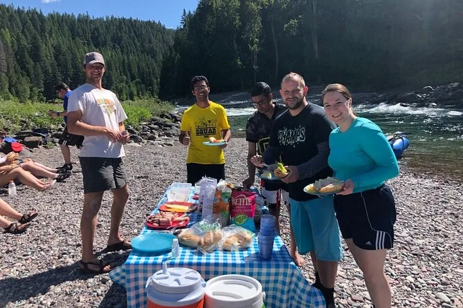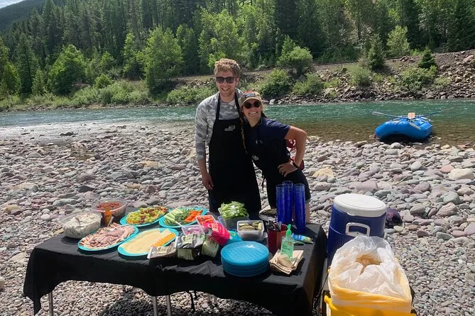 O dia inclui todas as taxas, uso completo de roupas de neoprene ou capas se necessário (inclusive sapatos para rio), além de um almoço buffet à beira do rio com ingredientes locais antes do retorno de ônibus para West Glacier.