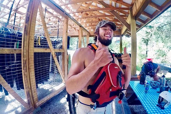 A atividade ocupa quase o dia todo, começando com o check-in às 9h15 e terminando à tarde, após o rafting e o almoço.