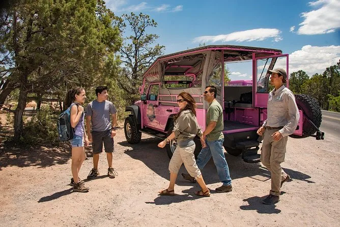 Você vai andar de Jeep aberto pela borda do Grand Canyon South Rim com um guia local que conta histórias que você não encontra em folhetos. Paradas em mirantes panorâmicos — incluindo o Grandview Point — para fotos e momentos de silêncio acima dos penhascos infinitos. Termine o dia com ingresso para o filme IMAX em Tusayan, levando para casa mais que fotos.