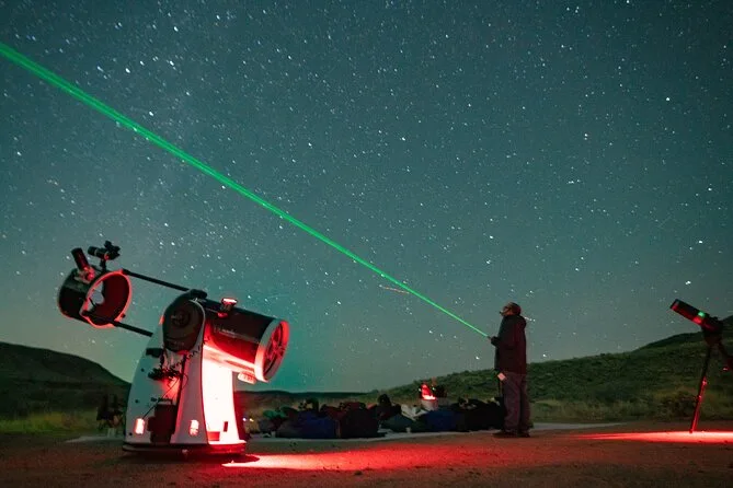 Você vai usar telescópios controlados por teclado, binóculos astronômicos e apontadores a laser guiados por um astrônomo.