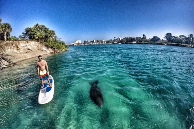Seu dia inclui todo o equipamento necessário para remar — colete salva-vidas, prancha (com espaço para os pequenos), apito — e água filtrada para se hidratar. Um naturalista local experiente conduz o grupo pelas águas de Jupiter enquanto tira fotos que você recebe depois (geralmente em até três dias), para você curtir o passeio e observar a vida selvagem sem preocupações.