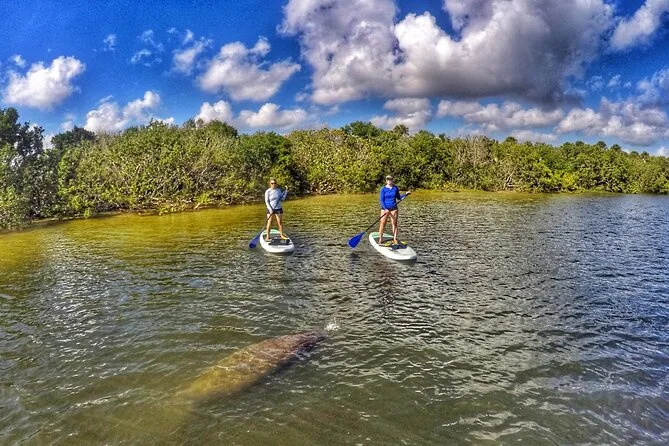 Você vai deslizar pelas águas calmas de Jupiter em um stand up paddle com um guia naturalista local, avistando peixes-boi e arraias sob seus pés e ouvindo histórias sobre a vida nos manguezais. Todo o equipamento está incluso (além de água filtrada), o ritmo é tranquilo para iniciantes, e você recebe fotos depois — deixando aquela sensação gostosa de paz da Flórida.