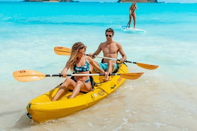 Seu dia inclui encontrar o guia na loja de Kailua para ajustar os equipamentos antes de remar com o grupo. Você poderá usar bicicletas se precisar, terá equipamento de snorkel para explorar perto da Ilha Popoiʻa, lanches leves e almoço na areia, além das taxas ambientais já incluídas.