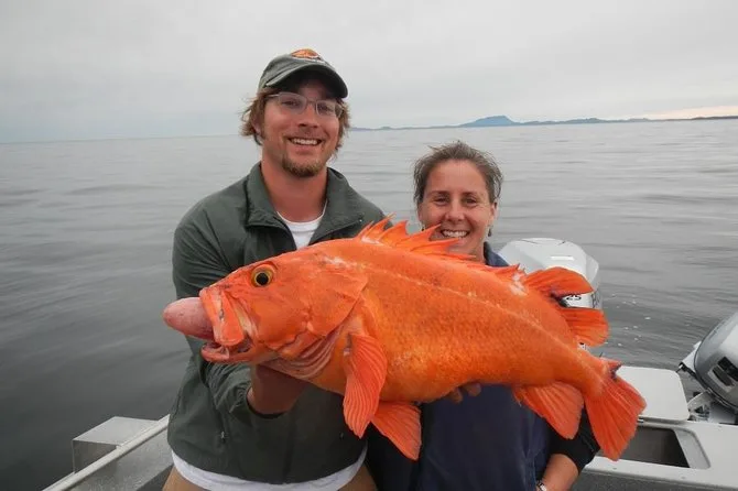Você pode tentar pegar salmão ou halibute durante o passeio.
