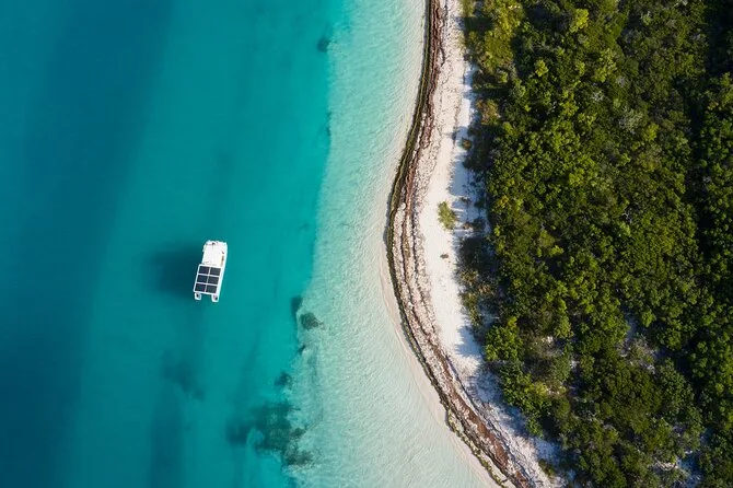 O barco é projetado para observação silenciosa da vida selvagem e guiado por biólogos focados em conservação e respeito aos animais.